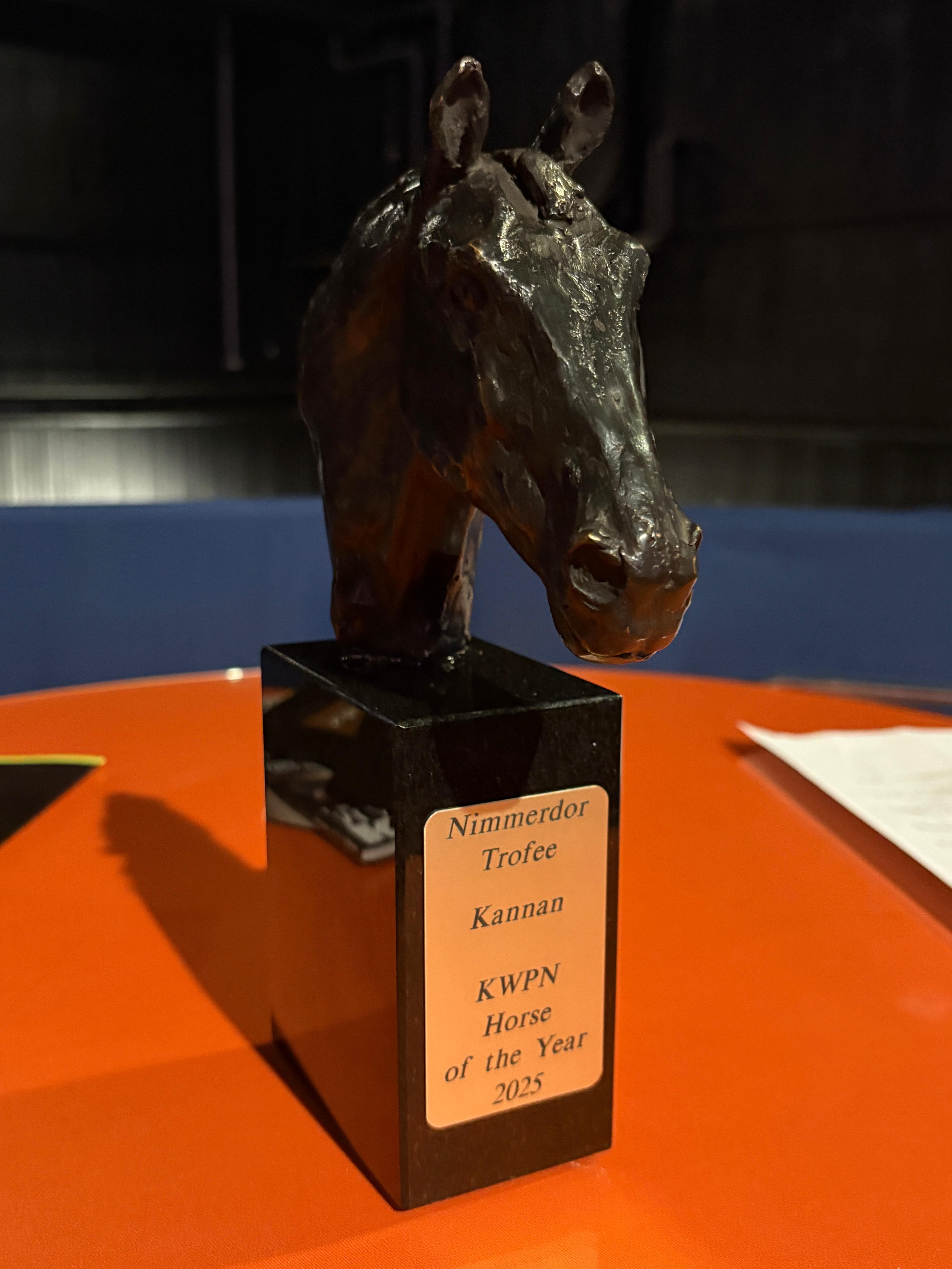 Le KWPN a mis à l’honneur ses propriétaires le GFE et ses naisseurs, Wobbe et Marietje Kramer, présents pour l’occasion qui se sont vus offrir un bronze. Une consécration méritée alors que deux heures plus tard, c'est à nouveau un fils de KANNAN : Party in de Hus et Willem Greve qui remportaient l'épreuve phare de la compétition des étalons à la suite d'un barrage enthousiamant.